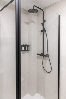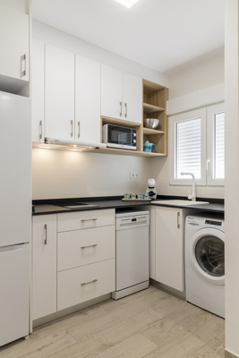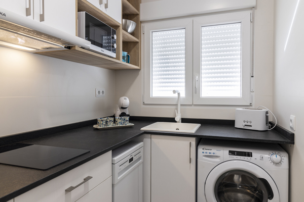 La cocina equipada y el baño con ducha moderna completan un espacio pensado para quienes buscan una experiencia cuidada, cómoda y con un toque elegante en el corazón de Peñíscola.
